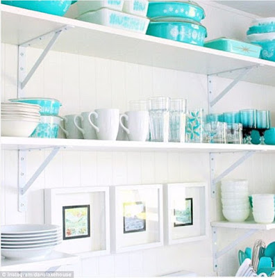 | Homely feeling: Try hanging pots, pans and glasses from railings and shelves in your kitchen - as well as giving a rustic feel to the room, it will also help to save you some space |
